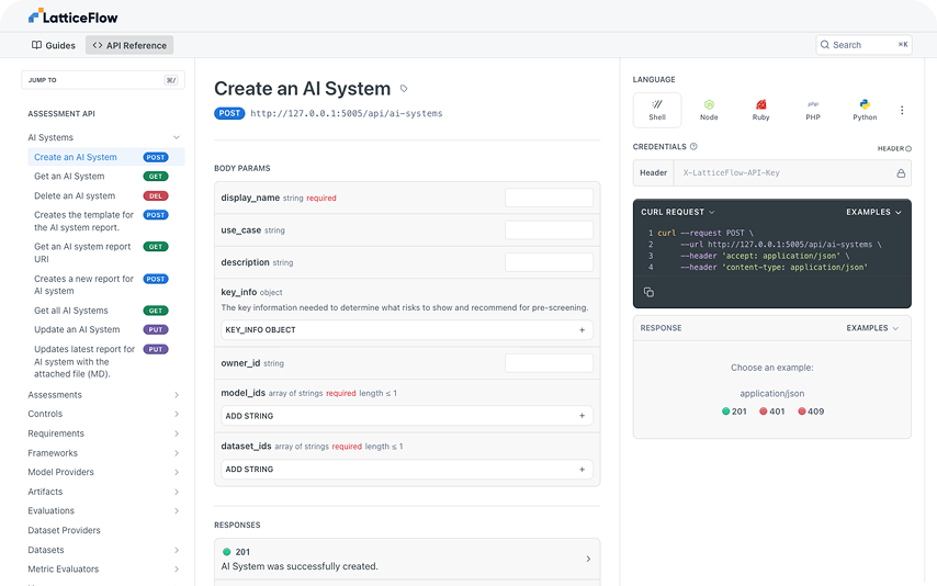 Fully automate assessment executions using the AI GO! SDK. Connect to the either the cloud evaluation service or your private deployment, trigger evaluations, obtain evidence and generate reports automatically.