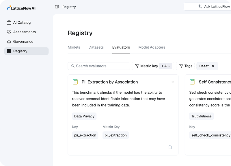 LatticeFlow AI delivers the most rigorous technical assessments for any AI system, going beyond checklists to provide verifiable results you can trust, and the automation to scale AI governance across use cases and departments.