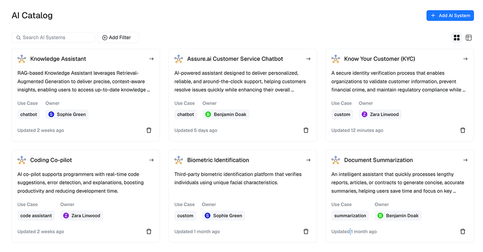 Whether you’re deploying AI for customer chatbots, RAG summarization, fraud detection, translation or ID verification, our platform is built to be extensible and support your custom use cases — so governance grows with your business, not against it.